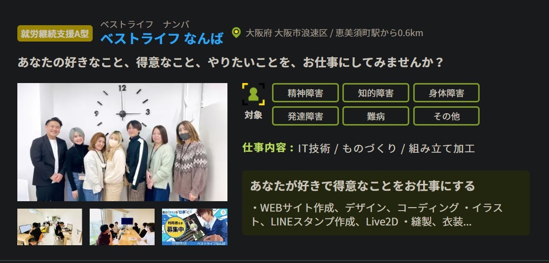 ベストライフの情報は、りたりこ(LITALICO)仕事ナビさん(働くことに障がいのある方の就職支援サイト)でも紹介しています。以下のリンクから移動できます。