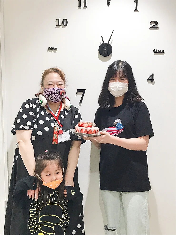 スタッフのお誕生日に手作りケーキ🎂をプレゼントしました。昼の休憩にみなさんと一緒にケーキを食べました!
