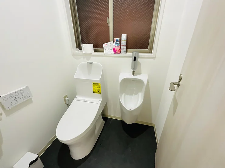 以前のブログで、1号店のトイレを紹介しましたが、今回は2号店です。一番の違いは、男性用の小便器があるところです。洋式と同じ空間にはなりますので、入室は一度に一人になりますが、嬉しい方もいらっしゃるのではないでしょうか。